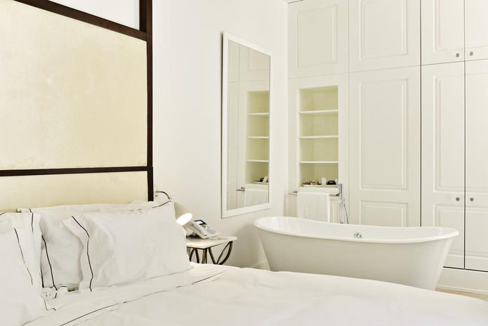 The Santiago Suite on the fourth floor, has the best view in house, looking out over Alfama across the Tejo river towards the Vasco de Gama bridge. Two Deluxe Suites with free-standing baths in the bedroom and views into this old palace´s inner coutyard with a vertical garden. Two Junior Suites are spacious and bright with a seating area within the bedroom.